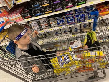 This is what shopping at many places with my son looks like (see pictures below). We can only buy what will fit in the cart with him. He cannot walk alongside me because he may elope, become unsafe, touch others or fall over an obstacle that he does not see.
